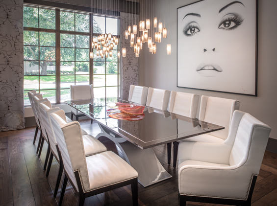 TOP IMAGE: Distinct lighting and art bring the dinning room to life.