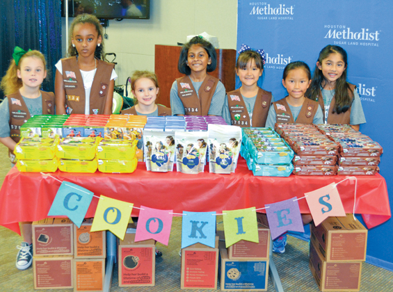 Girl Scouts Troop #157134 presented cookies of appreciation to the staff at Houston Methodist Hospital Sugar Land.