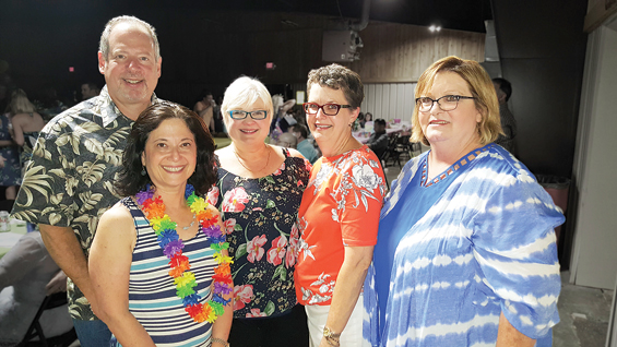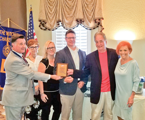 (L-R): Exchange Club of Fort Bend member John Healy with director of operations Cindy Sanchez and owners Mark and Tracey Schmid and Mike and Judy Schmid.