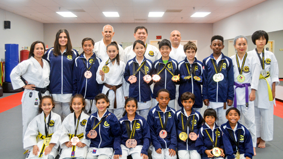 (Top row, l-r): Sensei Ramon Veras, Vinny Vuong and Sensei Nizar Albagdadi; (middle row): Sensei Cassie Pham-Korman, Fabiana Lopez, Charlize Lopez, Christina Korman, Ahn Vu, Kaito Sengoku, Gregory Gurevich, James Goodman Jr., Baoying Jenter and Sophia Ji; (bottom row): Anya Singh, Meher Singh, Fabiola Lopez, Nalika Nana, Jayden Goodman, Joshua Darsan, Haven Lopez and Tyler Lopez.