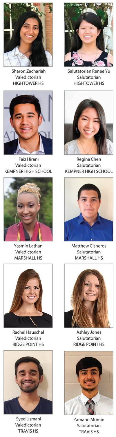 Fort Bend ISD has recognized the 22 graduating high school seniors who have the distinct honor of being named 2018 valedictorians and salutatorians. These outstanding scholars have earned the highest academic achievements among their schools’ graduating class. They are servant leaders, effective communicators, critical thinkers, compassionate citizens, collaborative team members and life-long learners.
