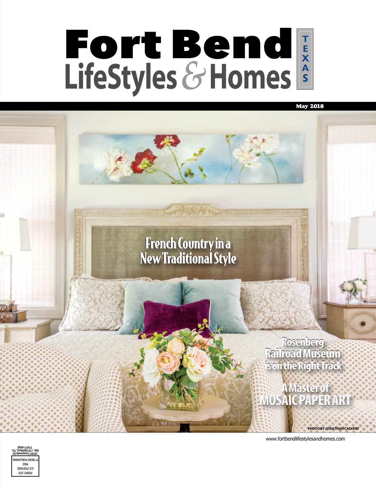 Fort Bend LifeStyles & Homes T E X A S May 2018 French Country in a New Traditional Style Rosenberg Railroad Museum is on the Right Track A Master of MOSAIC PAPER ART PHOTO BY JONATHAN CALVERT www.fortbendlifestylesandhomes.com 10707 Corporate Dr Ste. 170 Stafford, TX. 77477-4092